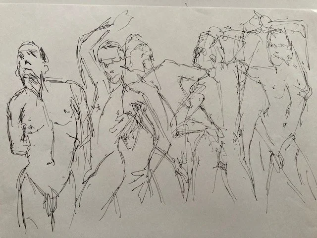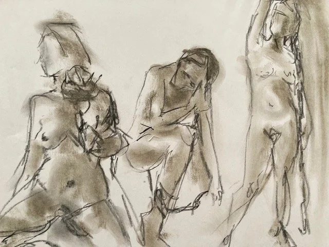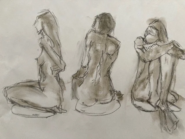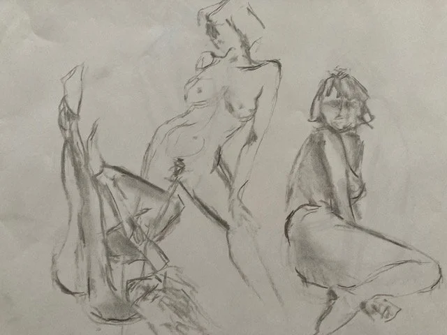 Developing a deeper understanding of the body helps me develop a language of mark making transferable to all areas of my art practice, as well as being an absolute joy. I love finding the energy and essence of the human body in all its wonderful forms. Here is a selection of quick sketches and longer poses, some of which may form the basis of a more detailed artwork.